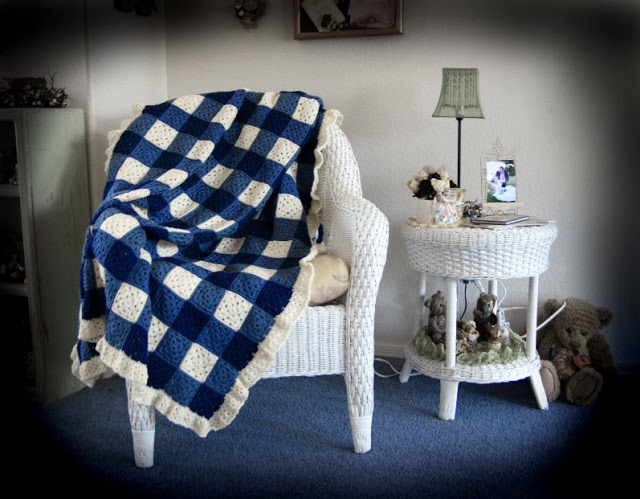 Here is a close-up of the gingham granny afghan that my mom and I crocheted together:
