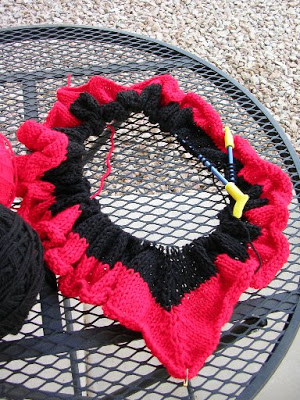 The third blanket that I am working on has gone through many phases lately. I started with a couple of miters in black and red, then decided that I would try one big miter.