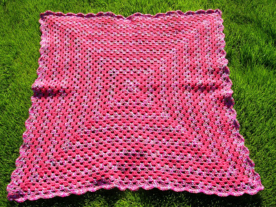 The third blanket pictured is The Pink Granny. This blanket was a baby present for someone I work with who was having a baby girl named Macie. It took me two days to make this blanket.
