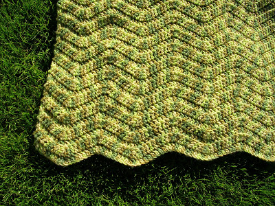 The first blanket pictured is The Green Ripple, my own variation of the Soft Waves pattern. I’ve had previous posts about this blanket and now it’s finally finished. This blanket was donated to Project Linus and is hopefully comforting a child right now.