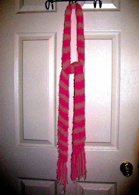 I’m wearing a scarf right now that Heather knit for me several Christmases ago. I remember opening a shirt box to find a grey hoodie shirt and a pink striped scarf inside. I was surprised to see this particular scarf in my box, because I had seen her knitting it, and she had told me she was making it for my other sister. All along she had intended it for me, and I had no idea. It always reminds me of the Cheshire Cat from “Alice in Wonderland,” one of my favorite books ever.