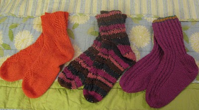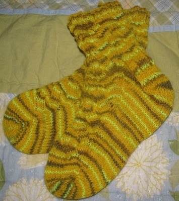I actually didn’t make my first pair of socks for the year until Mother’s Day. Since then, I have made 5 additional pairs of socks–4 for me, and a pair for my dad. So here’s a look at my new socks, even thought the pictures don’t do them justice: