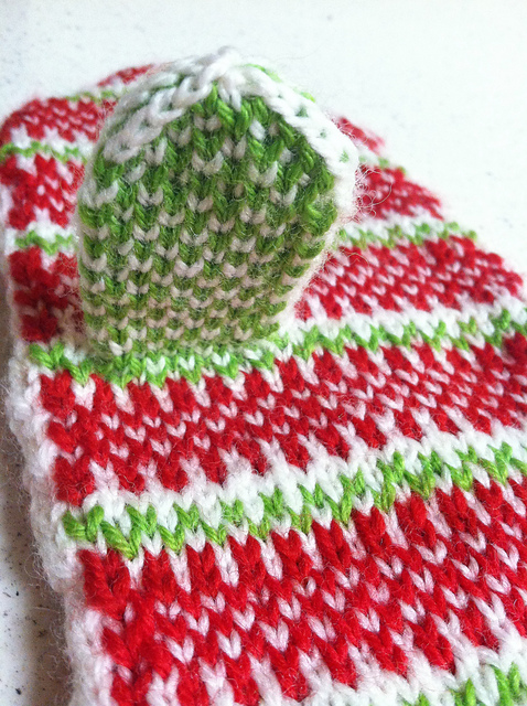 I have another pair of finished mittens to show off. These ones should look familiar because I’ve made them before, but this time they went to my mom for her birthday. So far, I’ve been giving away Christmas gifts for the intended recipients’ birthdays instead, so I have to come up with a new plan for Christmas gifts.