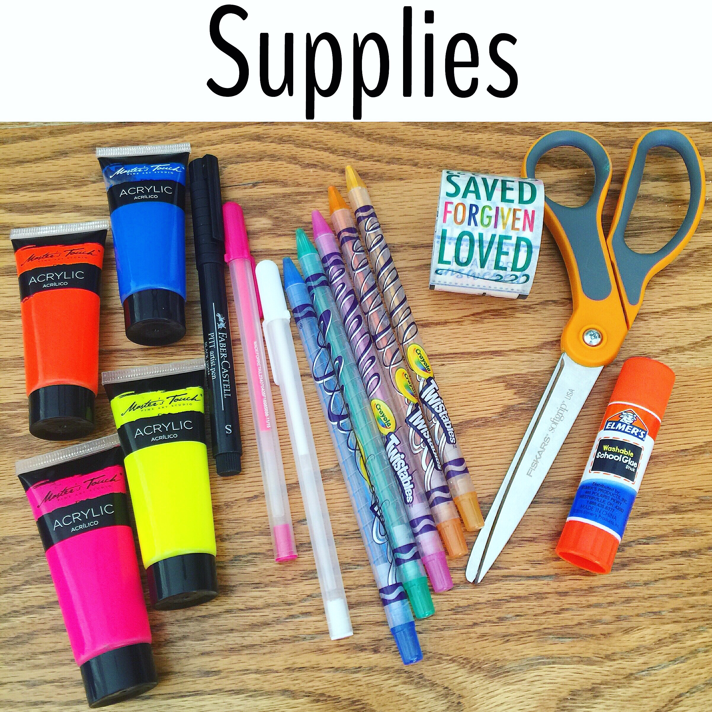 - Master’s Touch heavy body acrylic paint in neon colors (from Hobby Lobby)