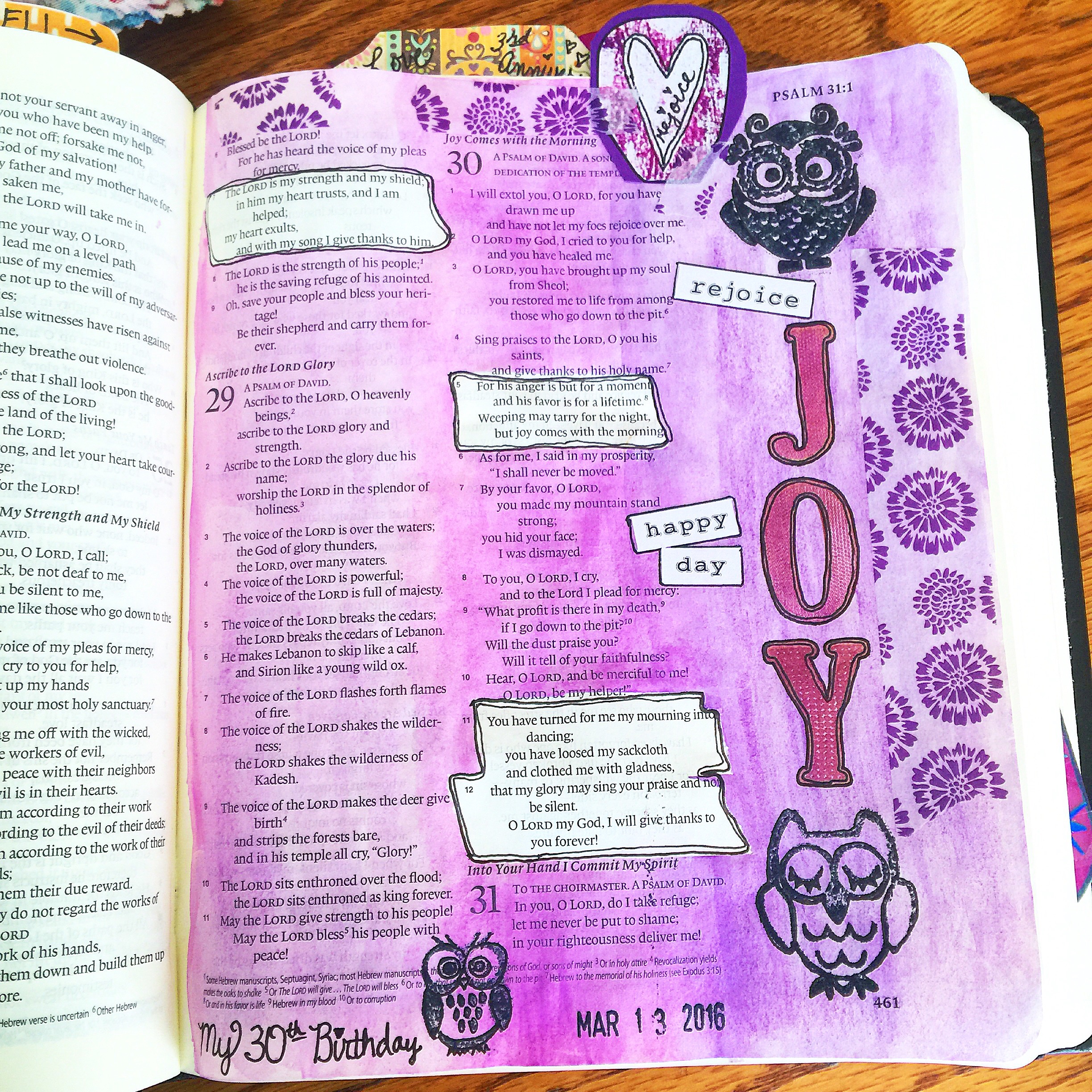 I forgot to post a few weeks ago that I officially turned 30. It’s weird to think that this is my actual age, when sometimes I feel like I am still 23. It’s amazing how much my life has changed and how much has happened in the last decade. The morning of my birthday I was awake early before my daughter got up, and I decided to start the day with some Bible journaling. Psalm 30:5 “…weeping may tarry for the night but JOY comes with the morning.” It would be easy to dwell on all the bad things that happened in my twenties and be fearful about the future, but this verse was a great reminder that with God there is always joy to be found. Only He can bring the type of joy that “turns mourning into dancing.” God has brought me a long way, and He is always there for me, so I am happy to say I have lived 30 years of life!