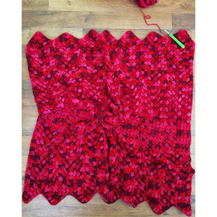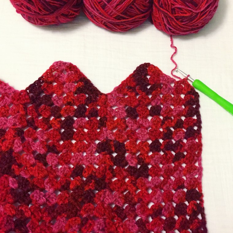 For this weeks installment of work in progress Wednesday, I’m featuring my Lipstick Granny Ripple blanket. I started crocheting this blanket last year as a side project for myself to work on between my shop orders. With the rush of Christmas and birth of my second daughter in February, it got pushed aside into a closet. But as April 20 approaches, I wanted to finally finish this blanket that’s been 9 years in the making.