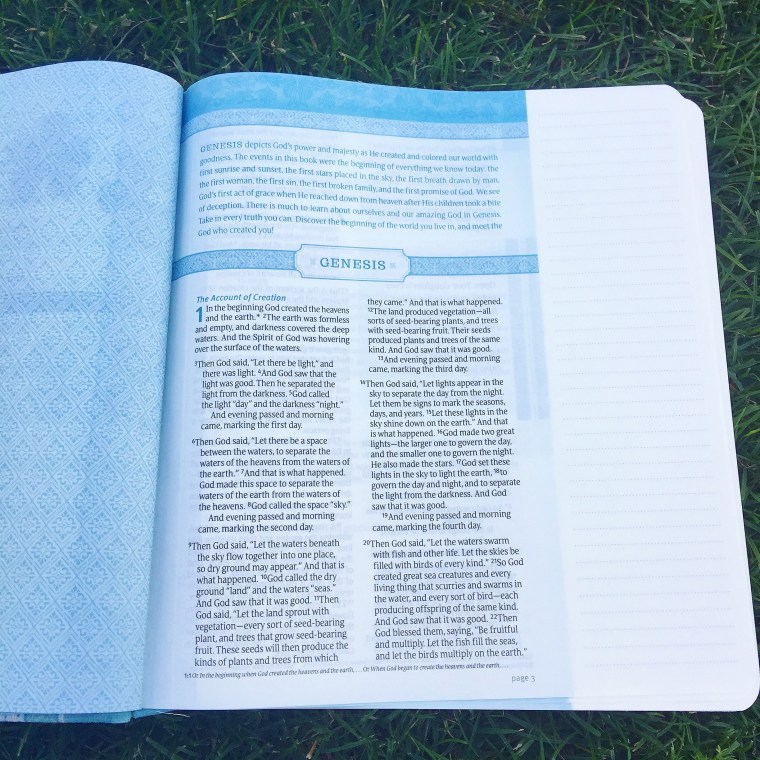 Overall, I highly recommend this Bible for women looking to Journal their way through a yearlong journey of Bible reading and devotions directed towards the thriving heart of a woman. I can’t wait to use this Bible and add my writing and art, as well as my heart, to the margins.