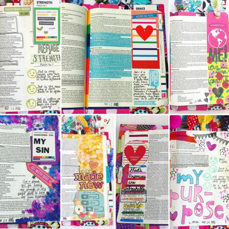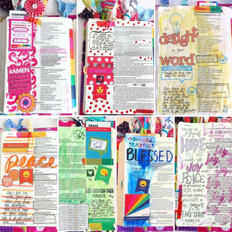I really enjoyed using a different color for each entry and also trying new techniques with acrylic paint on some of the last few entries. I also spent a lot more time writing out prayers in my Bible to go along with many of the entries. I felt God drawing me back over and over again to His word. That’s the beauty of Bible journaling to me: it’s not just about the art, it’s about how God is working on and speaking to my heart.