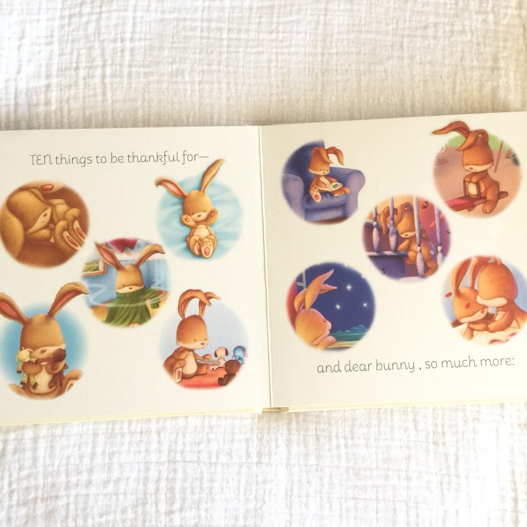 The first book I want to share with you is called Counting Blessings. This sweet book features a cute bunny family. The mommy and daddy bunny are helping the baby bunny to count different blessings throughout the day. The first half of the book show 10 different blessings to count and then the second half of the book counts things outside in nature, without using numbers like the first half.