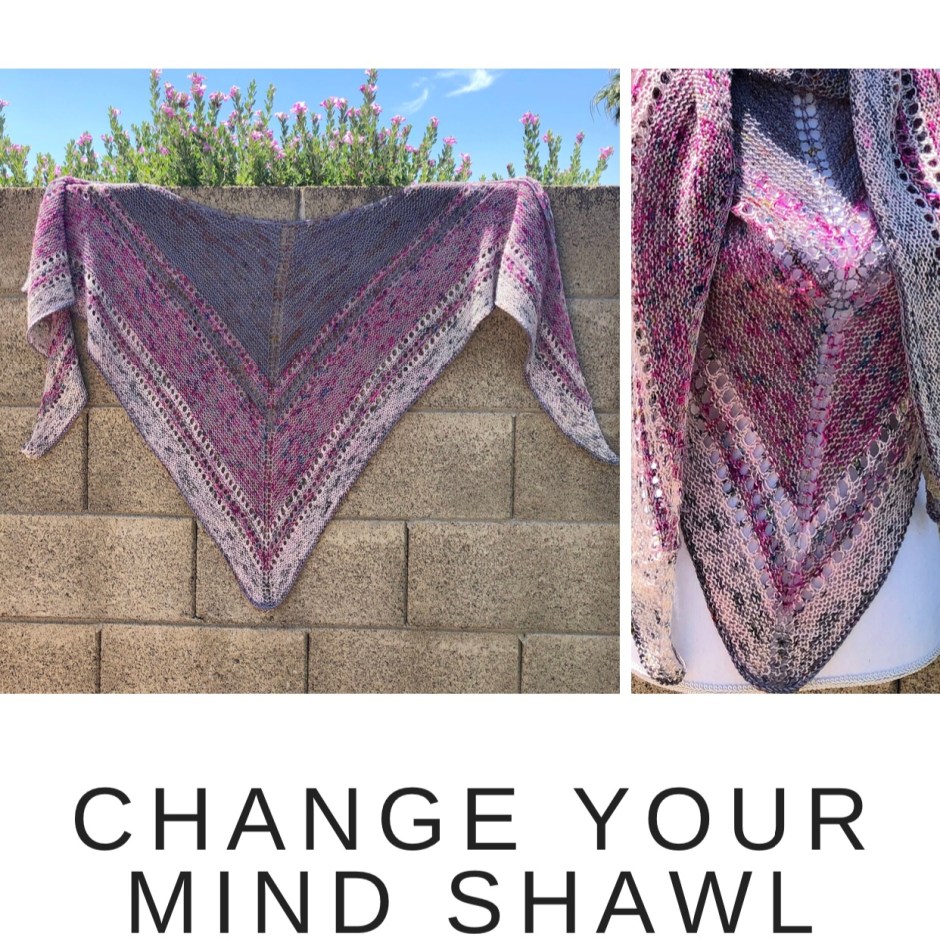 Change Your Mind Shawl was born out of a happy accident because I couldn’t decide on what pattern to create or colors to use. Sometimes momentary indecision can lead to a creative breakthrough. Instead of ripping out my work, I just kept going. It’s rare when I don’t plan out a design beforehand, so it was fun to let the creating happen as I knit. The simple garter stitch makes for a soothing project while the eyelets and color changes add just the right pop of fun.