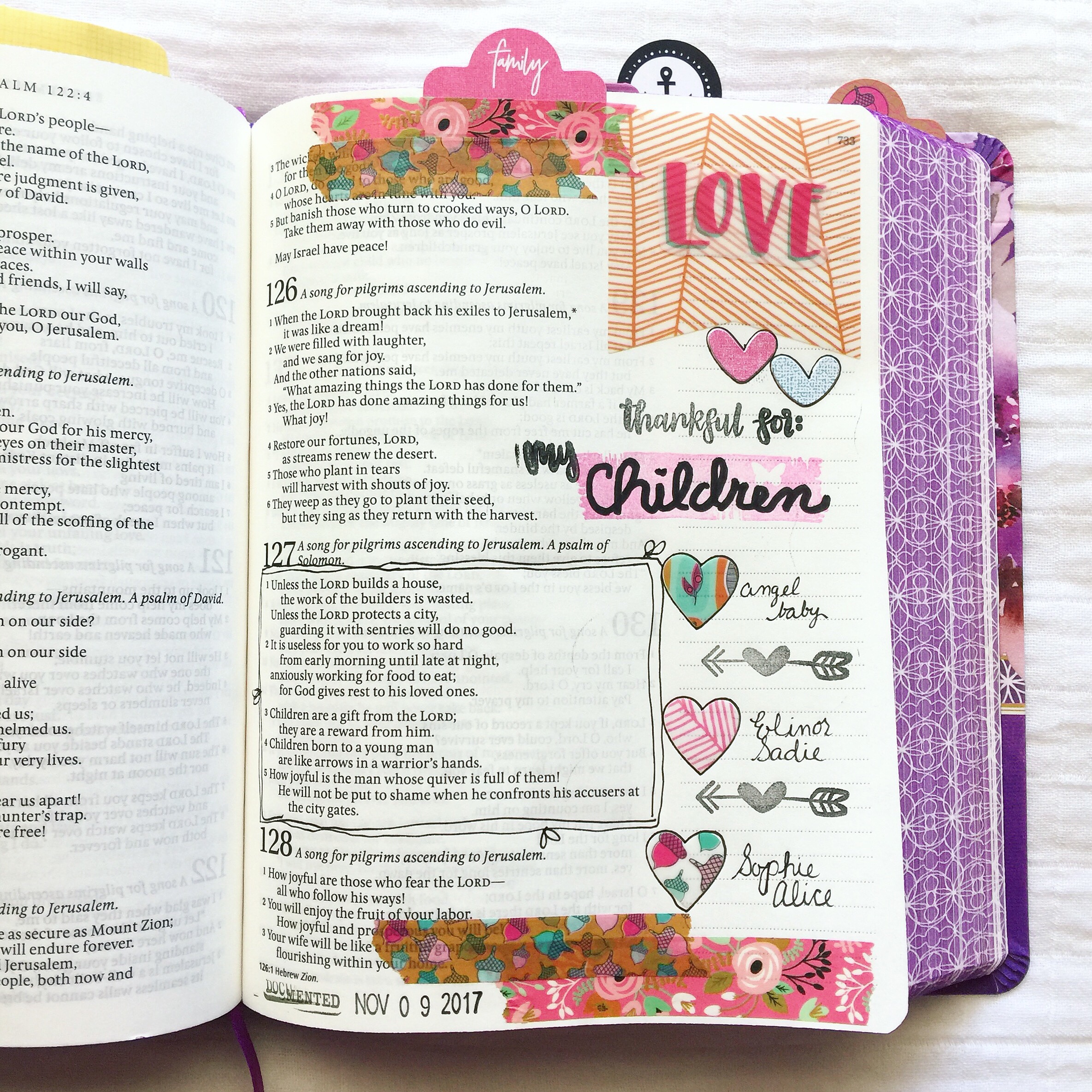 I am so grateful for discovering this wonderful community of Bible Journaling! I started officially Bible Journaling on January 1, 2016 after a very difficult and painful church experience that had left me broken and distant. But God sought me and brought me back into his word so that he could heal my heart. Expressing my worship and prayers creatively through illustrating in my Bible has brought such a renewal to my crushed spirit and healed me in many ways. The community of creatives illustrating in their Bibles gave me a chance to interact with other Christians again without worry of being hurt again.