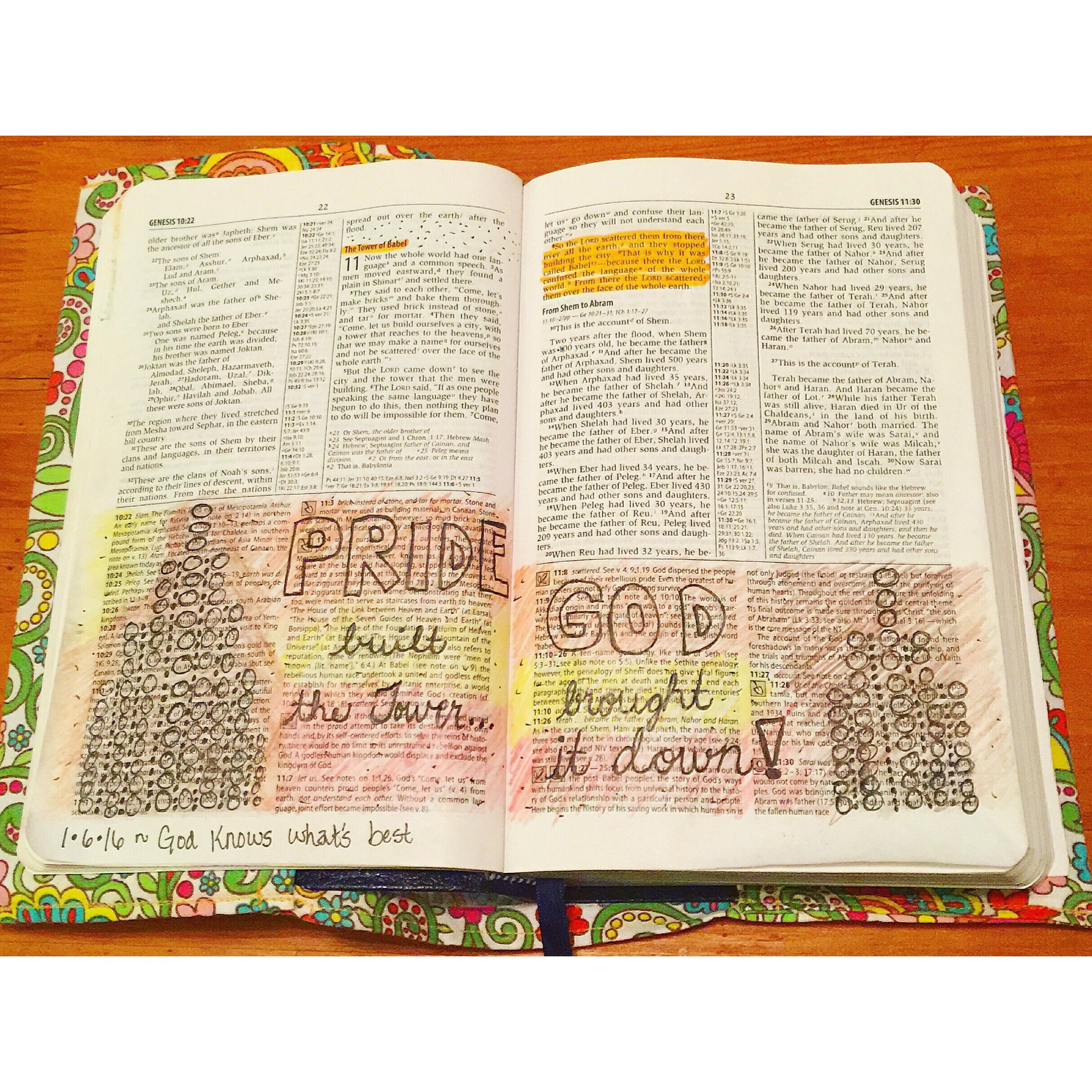 I am currently reading through Genesis, as well as occasionally reading in Psalms and John, so that is where most of my pages are from. I already showed my first page in the previous post, so check it out to see it.