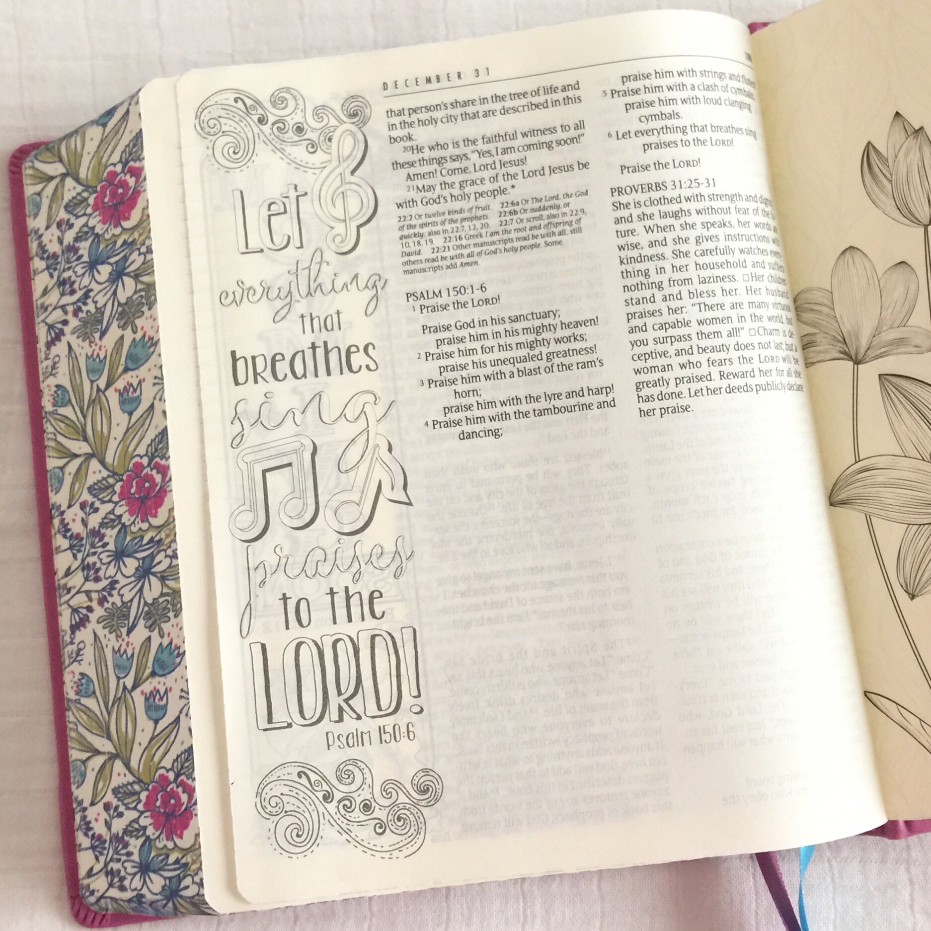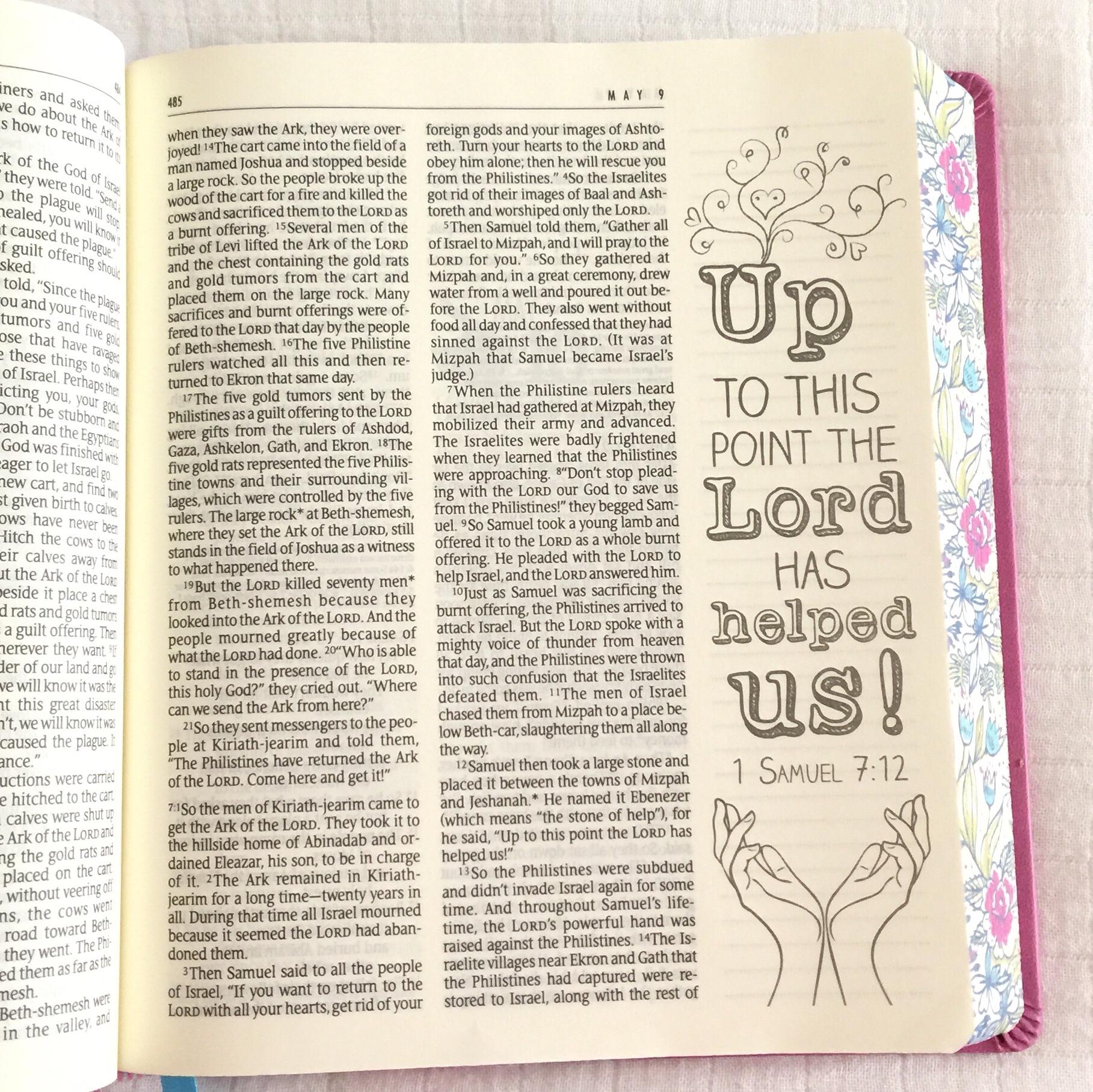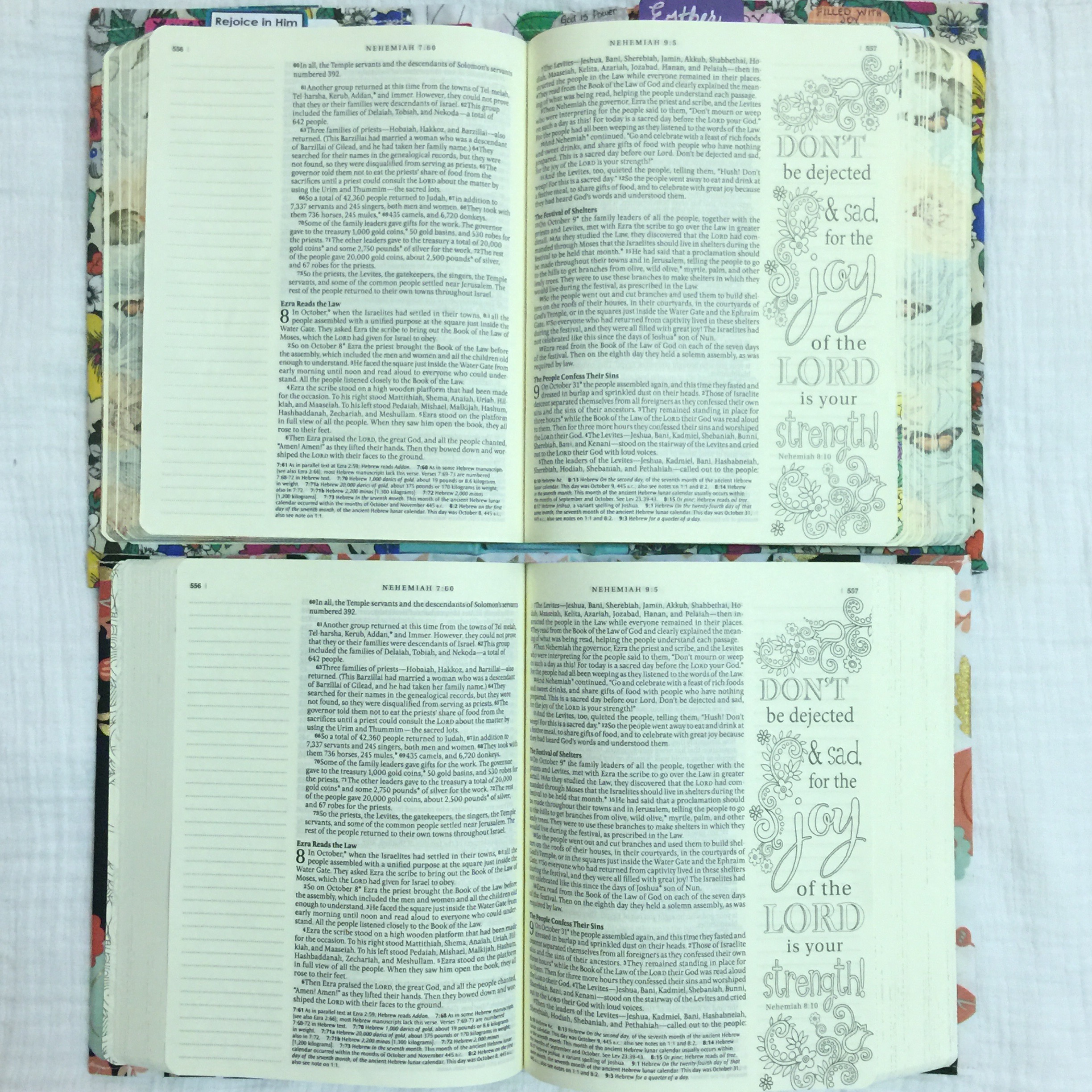 Overall, I highly recommend this Bible for women looking to Journal their way through a yearlong journey of Bible reading and devotions directed towards the thriving heart of a woman. I can’t wait to use this Bible and add my writing and art, as well as my heart, to the margins.