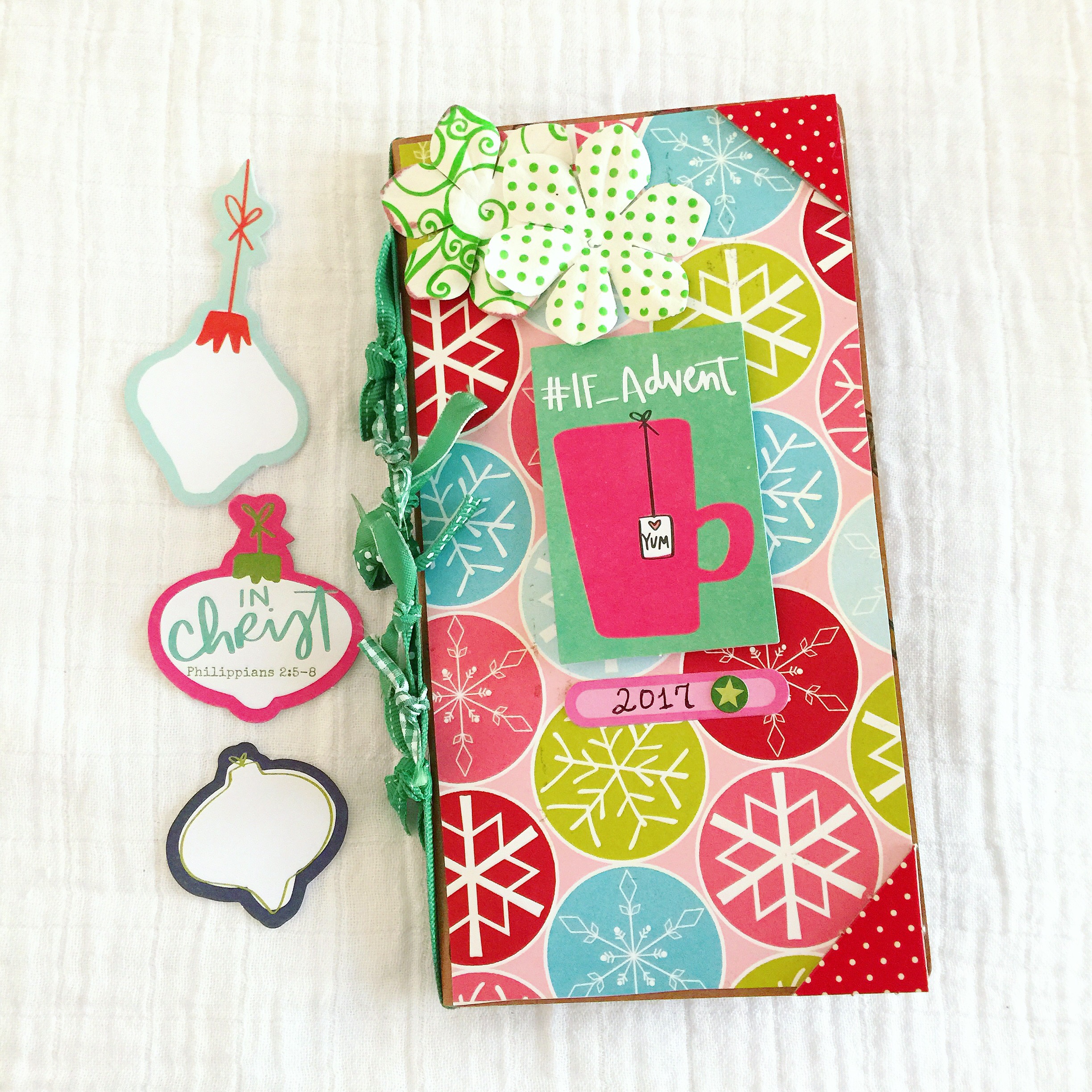 The devotional cards are the perfect size to fit into a traveler’s notebook. I’ve decided that I wanted to work in a traveler’s notebook in December so that I would have room for writing as well as adding in other sources and studies as I work through this season. I’ve been having fun getting it set up in anticipation of December as well as using a bunch of fun pieces from my stash in addition to the Advent kit to decorate my notebook.