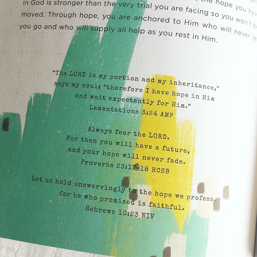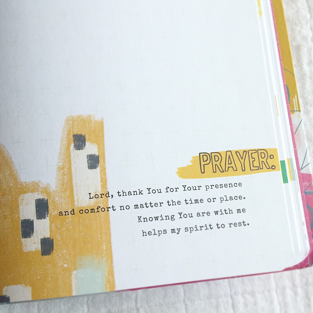 Each two-page spread is centered around one promise from the Bible and includes a small devotion, 3-5 verses for further exploration, unique artwork, space for journaling, and ends with a small prayer. The amazing thing about this book is that each spread has different artwork, so there are 100 different illustrations to inspire you as you read and pray through this book. Another great feature is the variety of verses for each promise to give you a jumpstart to take your journaling into your Bible.