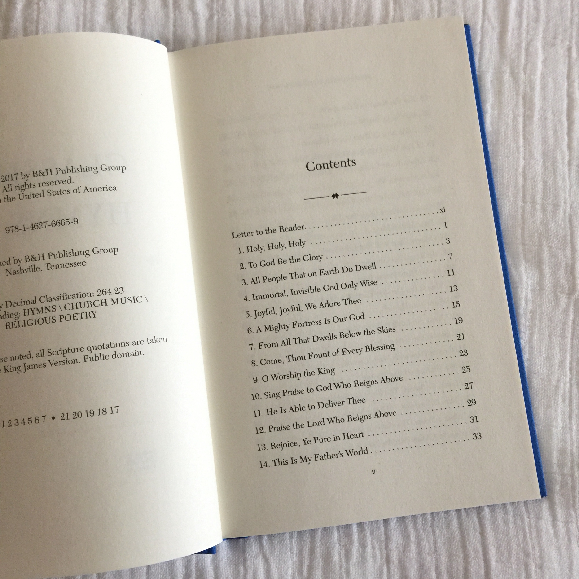 First of all, I love hardcover, cloth over board, books. The outside cover gives a feel of a classic, timeless title. I also liked that it wasn’t flashy or gimmicky, which is very appropriate for Hymns since they are a more traditional style of worship.