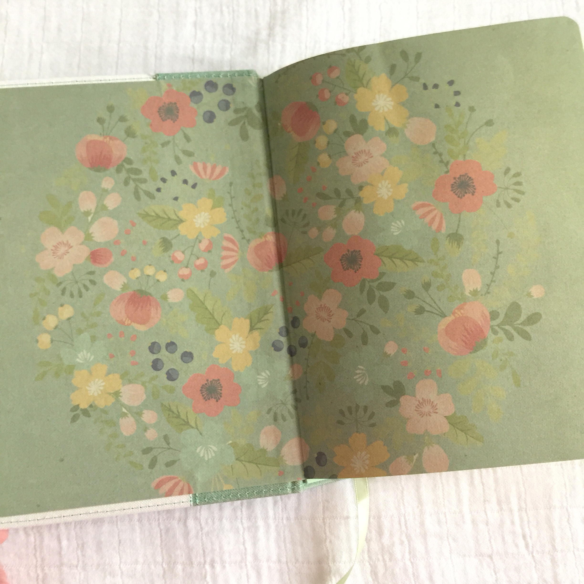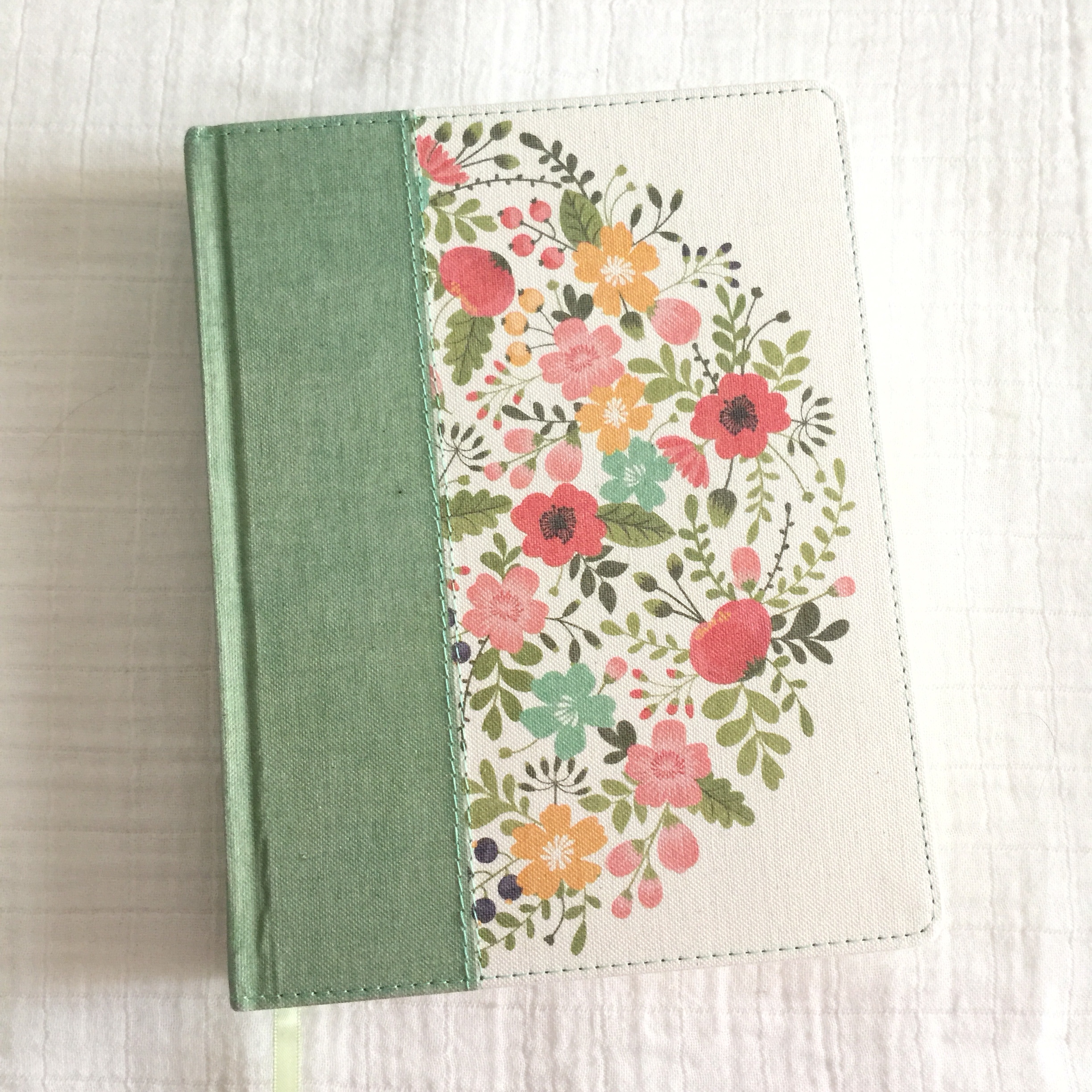 The outside and inside covers feature a floral design. The pages themselves are a plain cream with dark lined margins. Since this is called a “Notetaking” bible, it is definitely geared more towards written notes and journaling. This Bible has one green ribbon bookmark for marking the page when you want to remember your place. It also features the CSB text, which has personally become my new favorite translation for its readability while still maintaining accuracy.