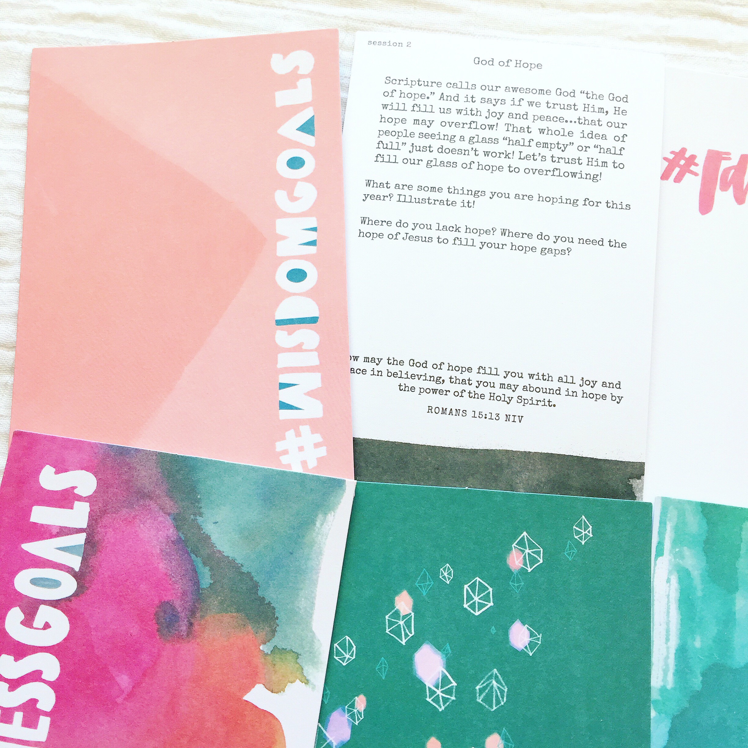 Here are some of my favorite things about #Goals: the shape of the tip-ins make them easier to use in the margin (plus they’re just so pretty), the 8 devotional cards all include a scripture reference in addition to questions and devotional content, the sticker sheet with all the words has filled in the blank space with mini diamond stickers, and can we just admire that geometric diamonds stamp *all the heart eyes* that I just want to use on everything. Also did you notice they’ve added in the color purple to their normal “Illustrated Faith” color scheme?