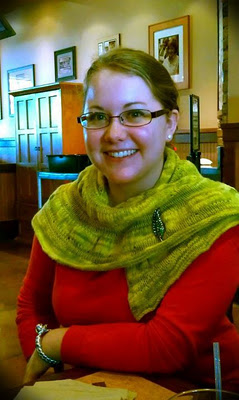 I’ll tell you what’s rare–pictures of me actually wearing the things I make. I have tons and tons of pictures of the things I make, because I’m the one who takes the pictures. But it’s rather awkward to take a picture of oneself, and rather embarrassing to ask others to take pictures of yourself for the sole purpose of just getting the knitted garment in the picture. So here I have not only one but two–count them TWO–pictures of me wearing my hand-knit items.