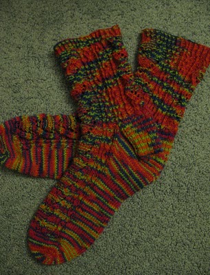 So overall, I’m very happy with how these came out, and my mom liked them too. Too bad it’s too hot to even contemplate wearing them, Loved the pattern (love the whole book, highly recommend), and I look forward to making more socks this summer,